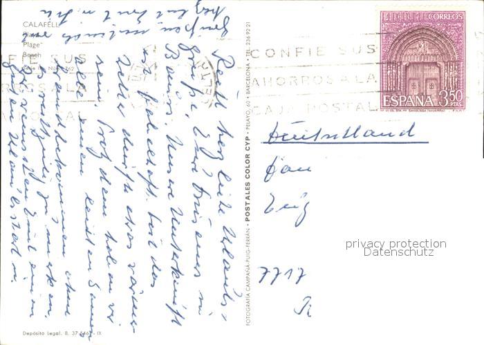 old postcard Calafell Strand postalisch gelaufen Erhaltung siehe scans
