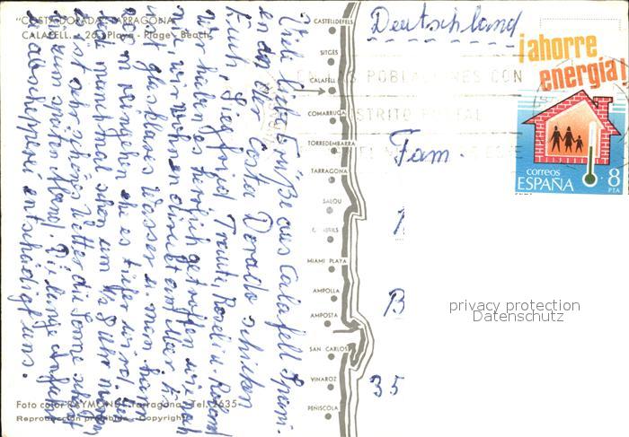 old postcard Calafell Strand Fischerboote postalisch gelaufen Erhaltung siehe scans