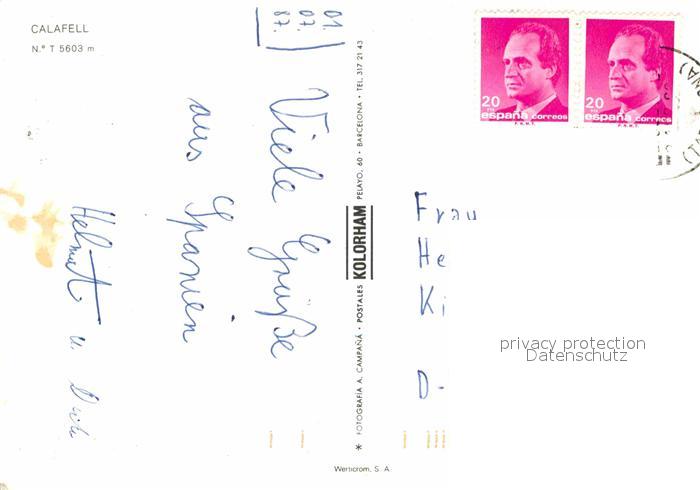 alte Postkarte Calafell Strandpartien Fliegeraufnahme postalisch gelaufen Erhaltung siehe scans [WerneD78]