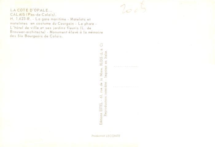 13948986 Calais 62 La gare maritime Tatelots et matelotesend costume du Courgain Hotel de ville et ses jardins fleuris Monument eleve des Six Bourgeois de Calais postalisch nicht gelaufen Erhaltung siehe scans [WerneD78] Wern Katcode 11170062662193