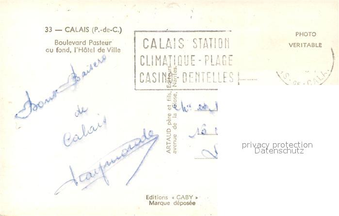 13538187 carte postale Calais Boulevard Pasteur au fond l’Hotel de Ville postalisch gelaufen Erhaltung siehe scans [WerneD78] KatCode: 11170062662193