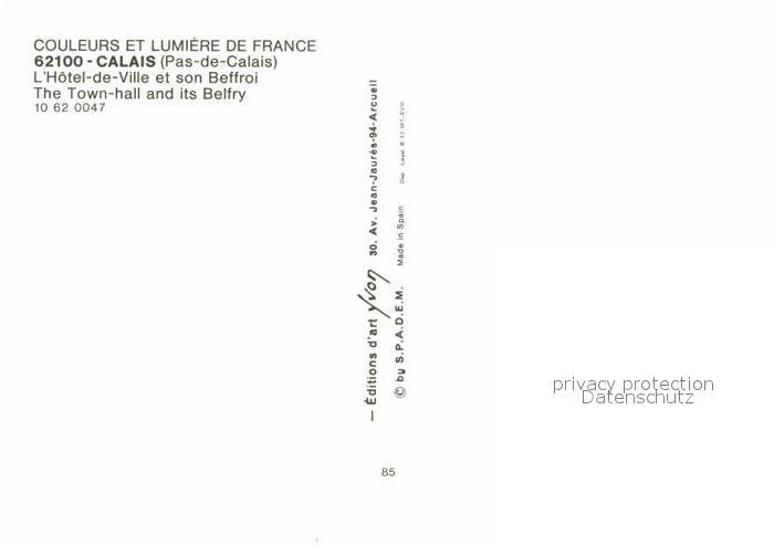 12769048 Calais Hotel de Ville Beffroi Collection Couleurs et Lumiere de France postalisch nicht gelaufen Erhaltung siehe scans [FriedD77] KatCode: 11170062662193
