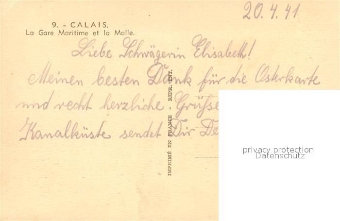 13506877 Calais La Gare Maritime la Molle postalisch nicht gelaufen Erhaltung siehe scans [KathaD81] KatCode: 11170062662193