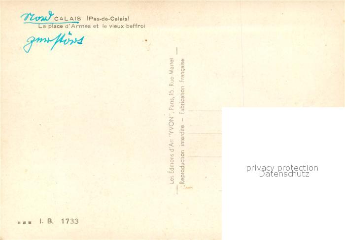 13153639 Calais Place d Armes et le vieux beffroi postalisch nicht gelaufen Erhaltung siehe scans [FriedD77] KatCode: 11170062662193