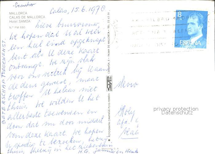 old postcard Calas de Mallorca Hotel Samoa Strand postalisch gelaufen Erhaltung siehe scans