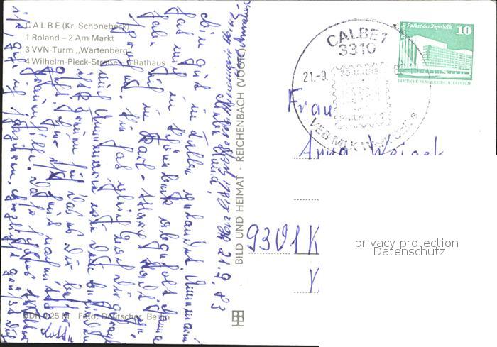 72328408 alte Postkarte Calbe Saale Roland Markt VVN- Turm postalisch gelaufen Erhaltung siehe scans KatCode: 11110015089055