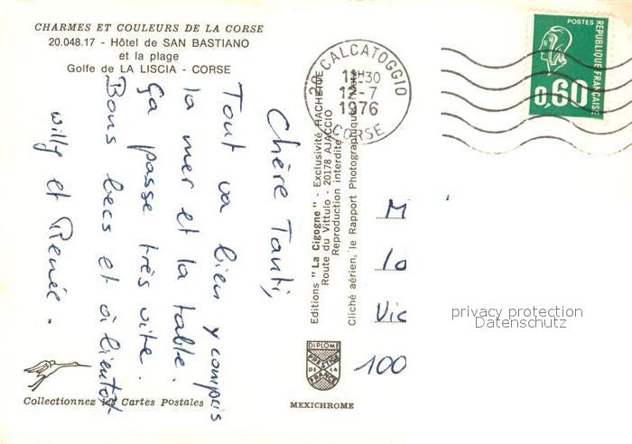 13134815 carte postale Calcatoggio Hotel de San Bastiano La Liscia postalisch gelaufen Erhaltung siehe scans [NatalD47] KatCode: 1117002A12A048