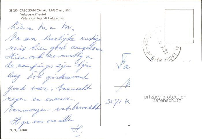 old postcard Calceranica al Lago Valsugana Caldonazzo postalisch gelaufen Erhaltung siehe scans