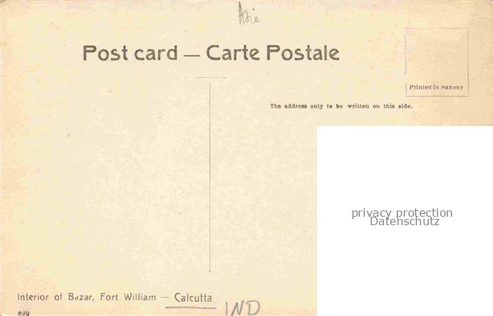 74010550 Calcutta India Interior of Bazar Fort William postalisch nicht gelaufen Erhaltung siehe scans [FriedD77] KatCode: 12120