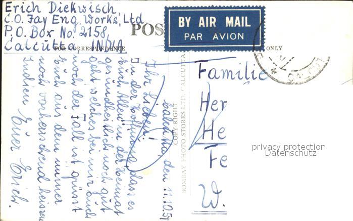 old postcard Calcutta Jain Temple postalisch gelaufen Erhaltung siehe scans