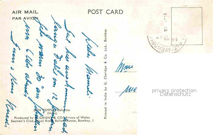 old postcard Calcutta Jain Temple postalisch gelaufen Erhaltung siehe scans [LiesaD40]