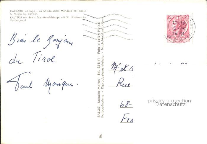 old postcard Caldaro Kaltern Strada Mendola S. Nicolo postalisch gelaufen Erhaltung siehe scans