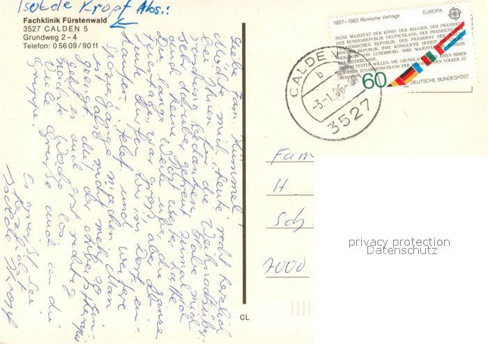 73662116 alte Postkarte Calden Fliegeraufnahme Fachklinik F?rstenwald postalisch gelaufen Erhaltung siehe scans [LiesaD40] KatCode: 11110006633005