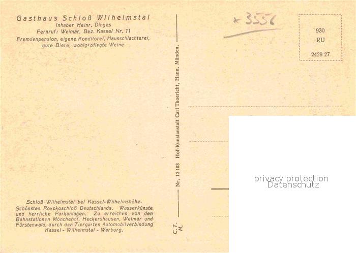 72694740 Calden Gasthaus Schloss Wilhelmstal Grotte mit Wasserkuensten postalisch nicht gelaufen Erhaltung siehe scans [LiesaD40] KatCode: 11110006633005