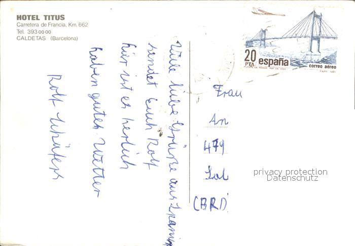 old postcard Caldetas Hotel Titus postalisch gelaufen Erhaltung siehe scans