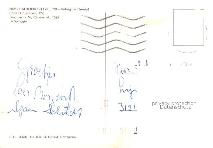old postcard Caldonazzo Castel Trapp Monte Cimone Spiaggia postalisch gelaufen Erhaltung siehe scans [PaolaD17]