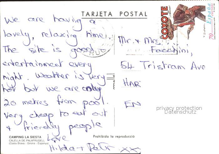 old postcard Calella Camping La Siesta postalisch gelaufen Erhaltung siehe scans