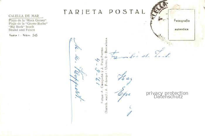 74135369 old postcard CALELLA de Mar Calella de la Costa ES Playa de la Roca Grossa postalisch gelaufen Erhaltung siehe scans [WerneD78] KatCode: 11510