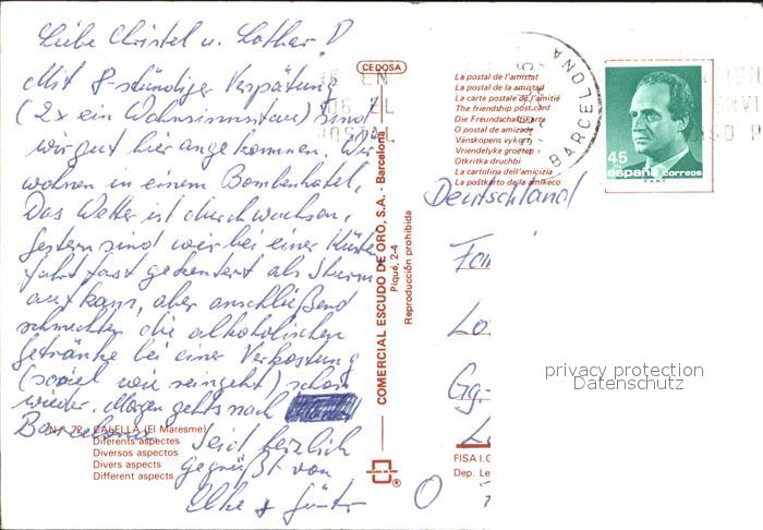 old postcard Calella de Mar Diferents aspectes postalisch gelaufen Erhaltung siehe scans