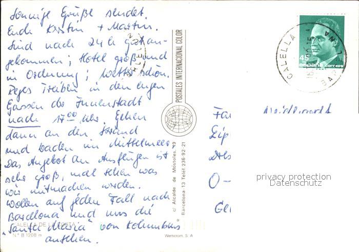 old postcard Calella de Mar Strand Felseninsel Strassenpartie postalisch gelaufen Erhaltung siehe scans