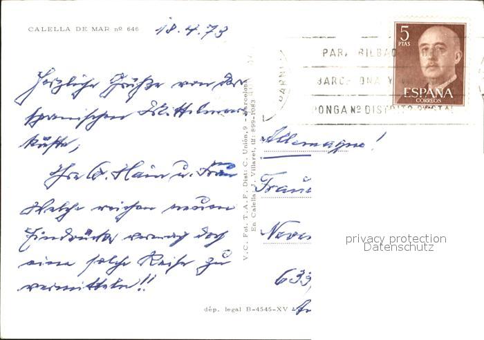 old postcard Calella de Mar Strand postalisch gelaufen Erhaltung siehe scans