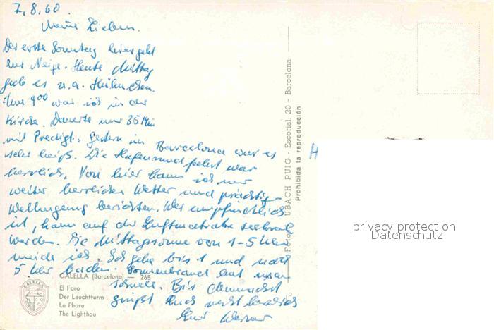 old postcard Calella El Foro Leuchtturm postalisch gelaufen Erhaltung siehe scans [FriedD77]