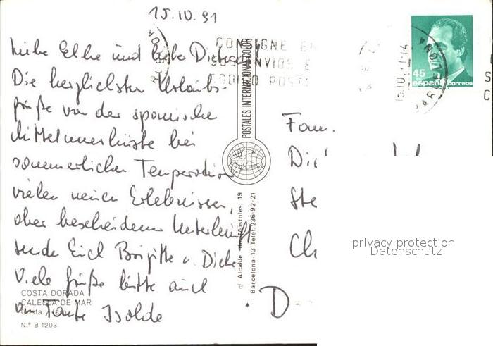 old postcard Calella Fliegeraufnahme postalisch gelaufen Erhaltung siehe scans
