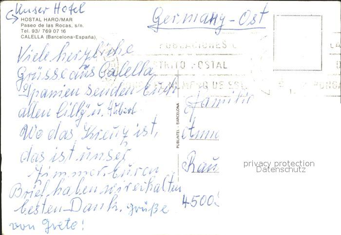 old postcard Calella Hostal Haro/Mar postalisch gelaufen Erhaltung siehe scans
