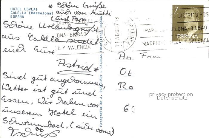 old postcard Calella Hotel Esplai postalisch gelaufen Erhaltung siehe scans