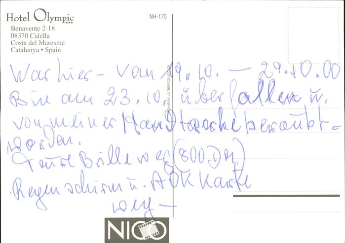 Calella Hotel Olympic Playa Piscina postalisch nicht gelaufen Erhaltung siehe scans