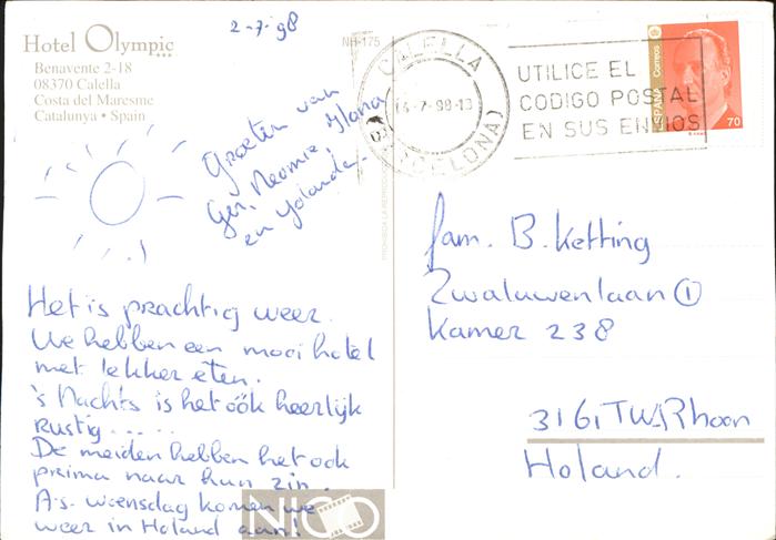 old postcard Calella Hotel Olympic Playa Swimming Pool postalisch gelaufen Erhaltung siehe scans
