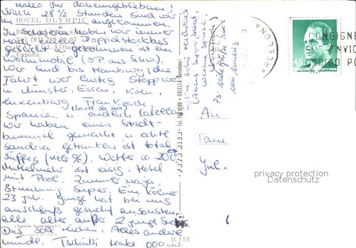 old postcard Calella Hotel Olympic postalisch gelaufen Erhaltung siehe scans [LiesaD40 kt120box]