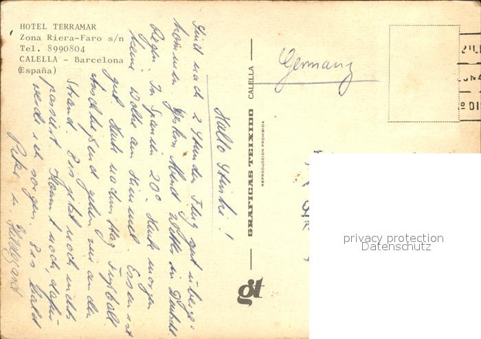 old postcard Calella Hotel Terramar postalisch gelaufen Erhaltung siehe scans