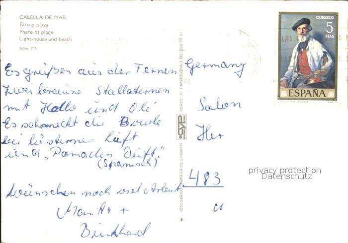 old postcard Calella Leuchtturm Strand postalisch gelaufen Erhaltung siehe scans