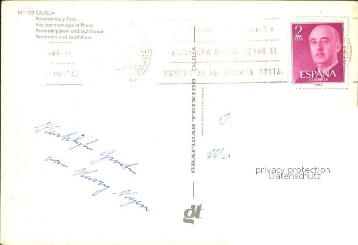 old postcard Calella mit Leuchtturm und Strand postalisch gelaufen Erhaltung siehe scans