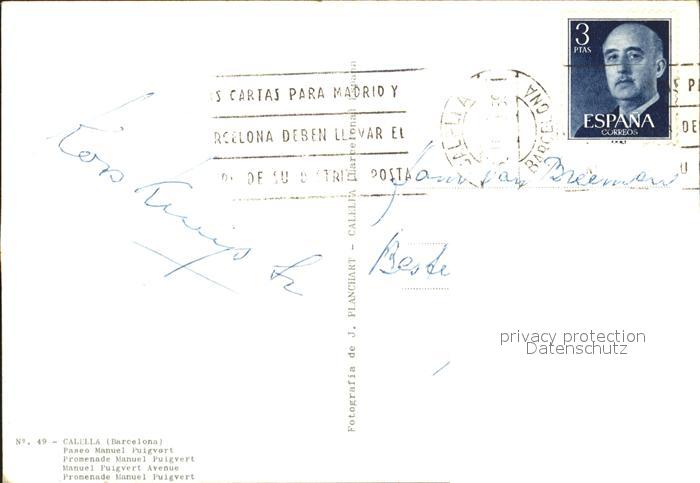 old postcard Calella Paseo Manuel Puigvert postalisch gelaufen Erhaltung siehe scans