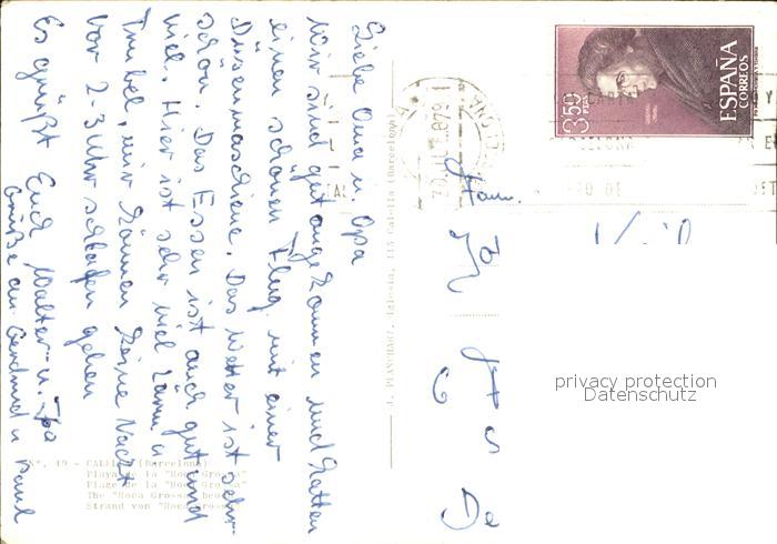 old postcard Calella Strand Roca Grossa postalisch gelaufen Erhaltung siehe scans