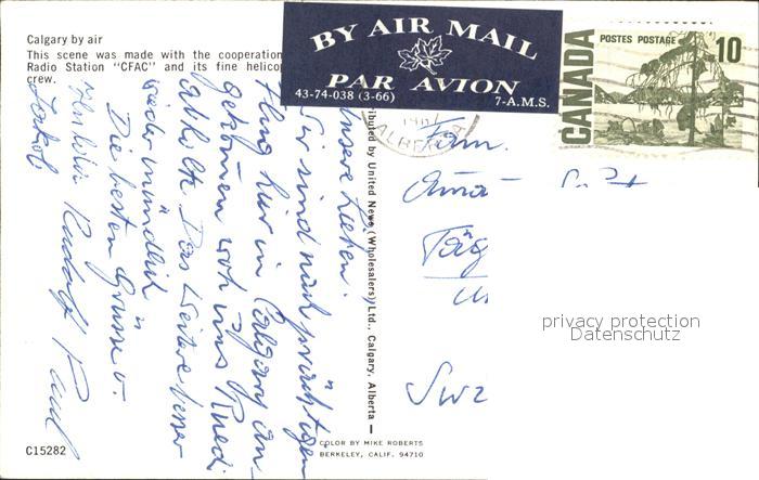 old postcard Calgary Aerial view postalisch gelaufen Erhaltung siehe scans