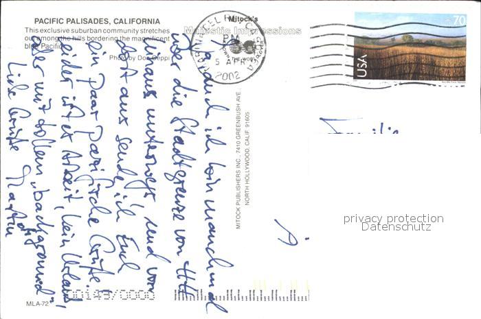 72499945 old postcard California City Pacific Palisades postalisch gelaufen Erhaltung siehe scans KatCode: 14140050000000