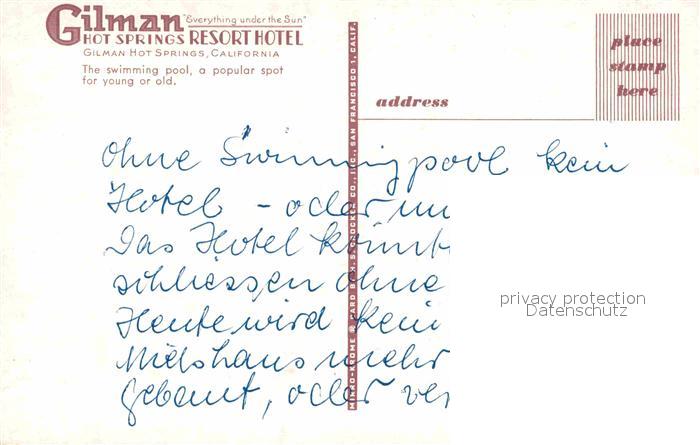 72631197 California Hot Springs Gilman Resort Hotel Swimming pool postalisch nicht gelaufen Erhaltung siehe scans [WerneD78] KatCode: 14140050000000