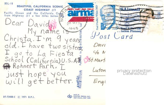 73060735 old postcard California US-State Beautiful California Scenic Coast Highway postalisch gelaufen Erhaltung siehe scans [WerneD78] KatCode: 14140050000000