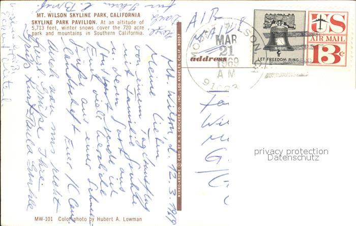 72375958 old postcard California US-State Mt. Wilson Skyline Park Pavillon postalisch gelaufen Erhaltung siehe scans KatCode: 14140050000000