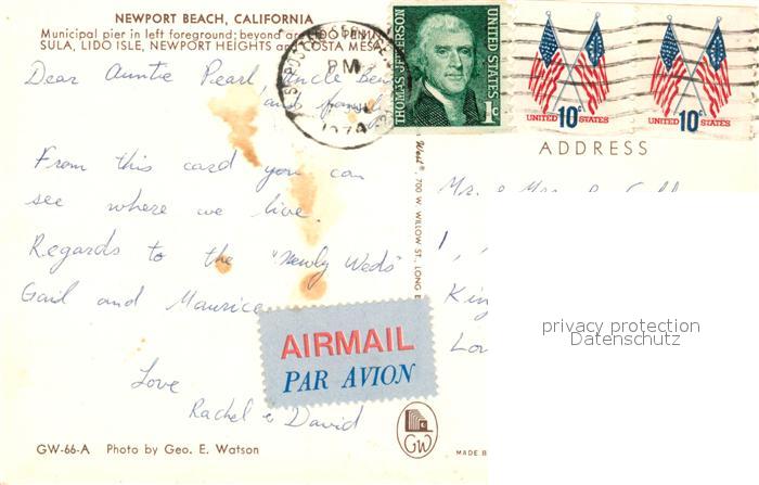 73060791 old postcard California US-State Newport Beach Fliegeraufnahme postalisch gelaufen Erhaltung siehe scans [WerneD78] KatCode: 14140050000000
