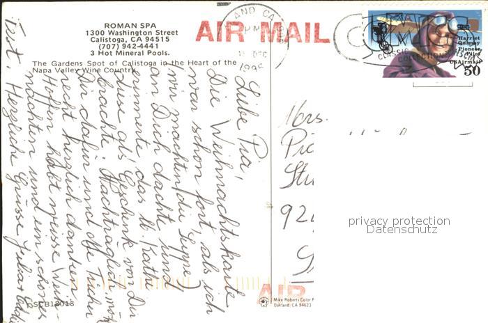 72381749 old postcard Calistoga Roman Spa Mineral Pool postalisch gelaufen Erhaltung siehe scans KatCode: 14140050000000
