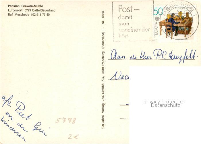 73646330 alte Postkarte Calle Meschede Pension Grewen-Muehle Uferpartie am See postalisch gelaufen Erhaltung siehe scans [FriedD77] KatCode: 11110005958032
