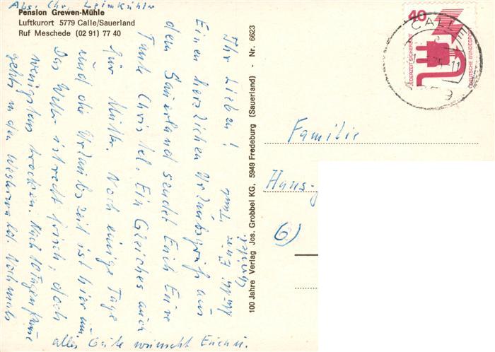 73942818 alte Postkarte Calle Meschede Pension Grewen Muehle postalisch gelaufen Erhaltung siehe scans [WerneD78] KatCode: 11110005958032
