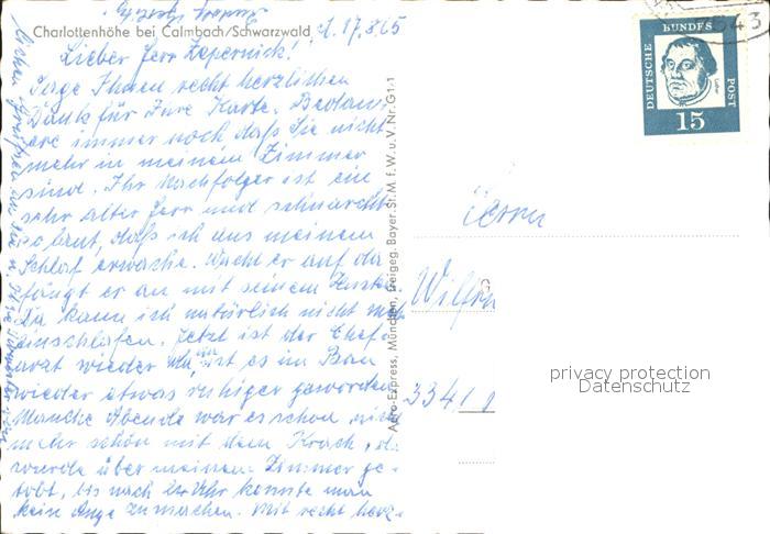 72104994 alte Postkarte Calmbach Enz Charlottenhoehe postalisch gelaufen Erhaltung siehe scans KatCode: 11110008235079