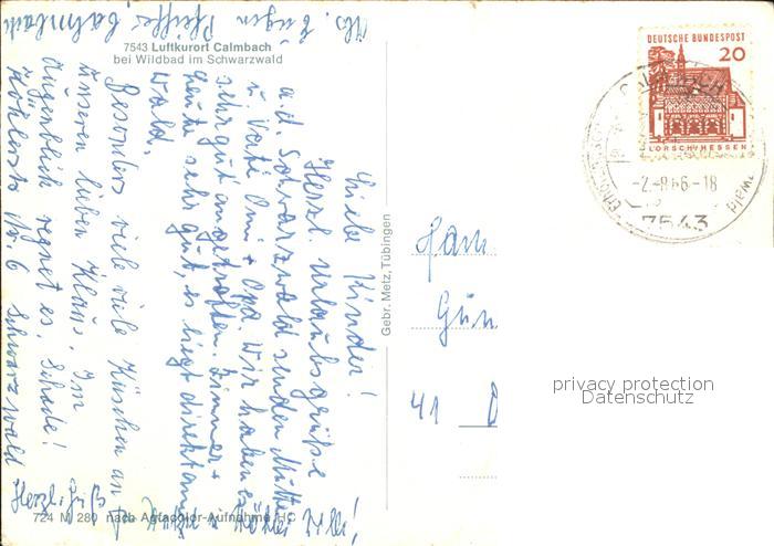 72493194 alte Postkarte Calmbach Enz Fliegeraufnahme Schwimmbad postalisch gelaufen Erhaltung siehe scans KatCode: 11110008235079