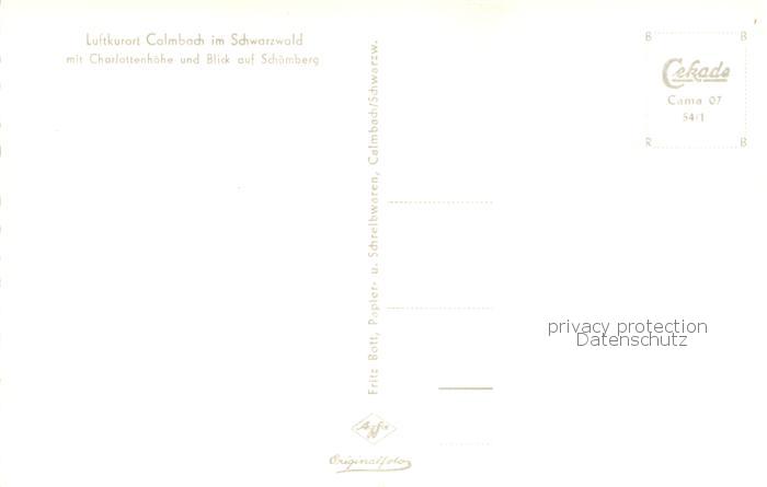 73762484 Calmbach Enz Fliegeraufnahme Totalansicht m. Charlottenhoehe u. Schoemberg postalisch nicht gelaufen Erhaltung siehe scans [LiesaD40] KatCode: 11110008235079