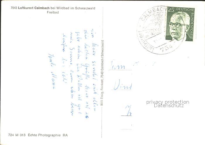 72072650 alte Postkarte Calmbach Enz Freibad Luftkurort Schwarzwald postalisch gelaufen Erhaltung siehe scans KatCode: 11110008235079